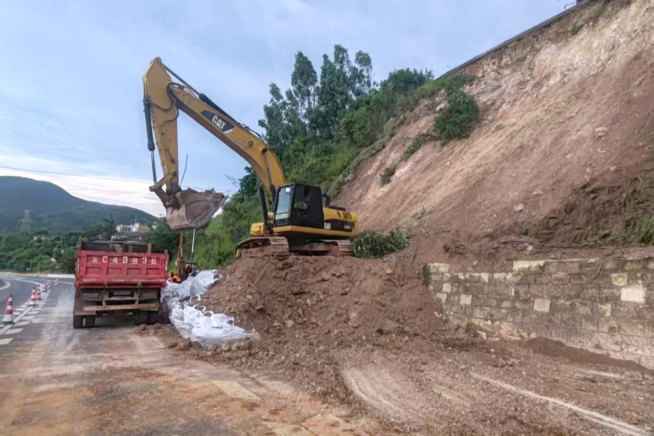 險情發(fā)生后,公路建設(shè)五公司昆明養(yǎng)護(hù)項目部立即啟動應(yīng)急搶險預(yù)案,組織搶險隊伍、調(diào)配專業(yè)設(shè)備趕赴現(xiàn)場,2臺挖掘機(jī)、1臺裝載機(jī)和3輛渣土車協(xié)同作業(yè),高效清理塌方土石,8輛應(yīng)急搶險車輛承擔(dān)物資運送和現(xiàn)場協(xié)調(diào)任務(wù),26名搶險人員分工明確、緊密配合。經(jīng)過5個多小時艱苦奮戰(zhàn),受阻路段成功搶通,恢復(fù)基本通行條件,為過往車輛開辟了安全通道。